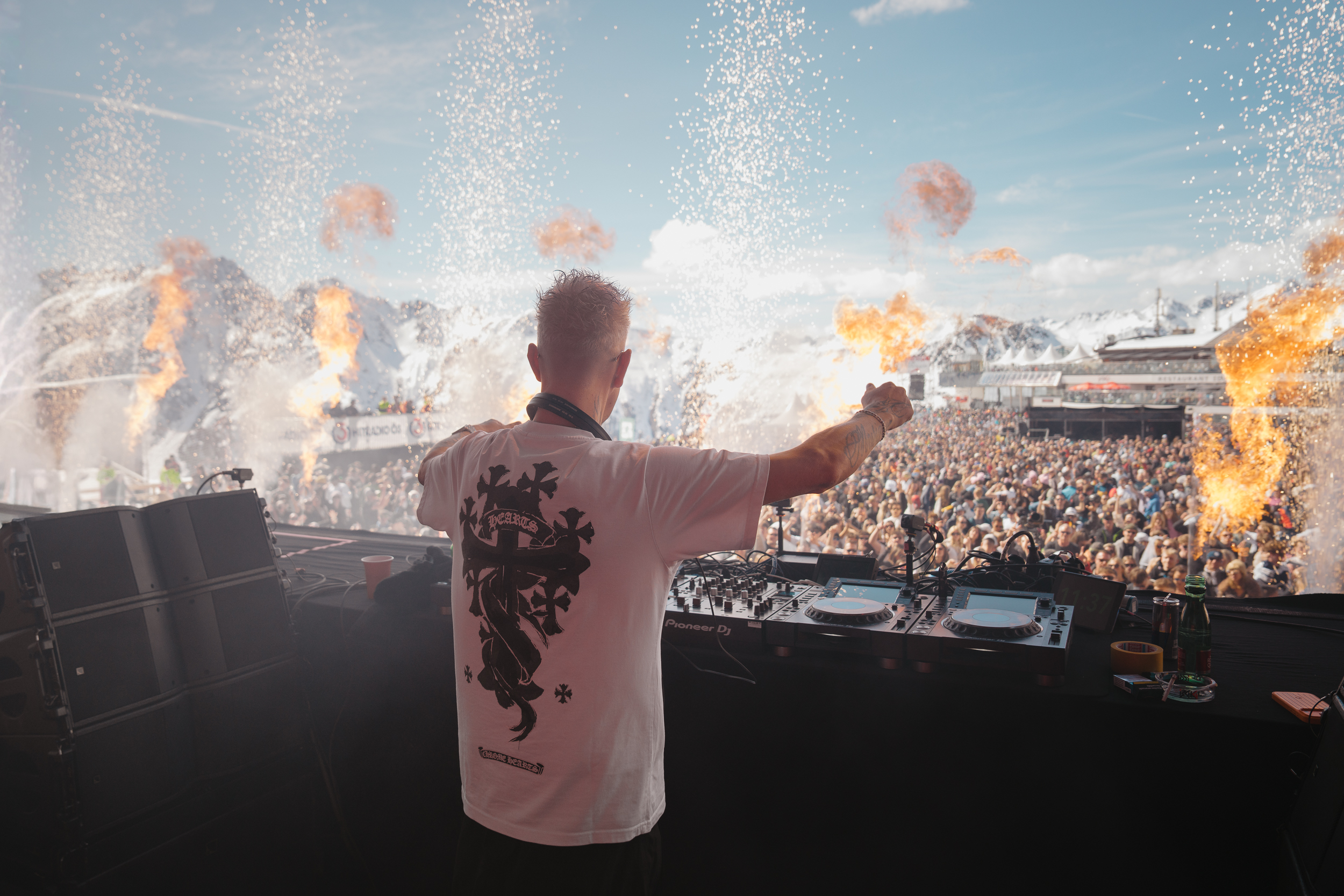 Im Anschluss übernahm Star-DJ Robin Schulz die Bühne, betrat mit bester Laune die Ischgl Stage und eroberte sofort das Podium wie auch die Menge für sich, als er auf den DJ-Tisch stieg und die Idalp auf 2.300 Metern Höhe in eine vibrierende Open-Air-Partyzone verwandelte. Mit internationalen Hits wie „Speechless“, „Prayer x A Feeling“, „Flames“ und „What’s a Girl to do in 25“ sowie seinen charakteristischen Sounds zwischen Deep House, Electro und Pop sorgte er für pulsierende Festivalstimmung mitten im Skigebiet.