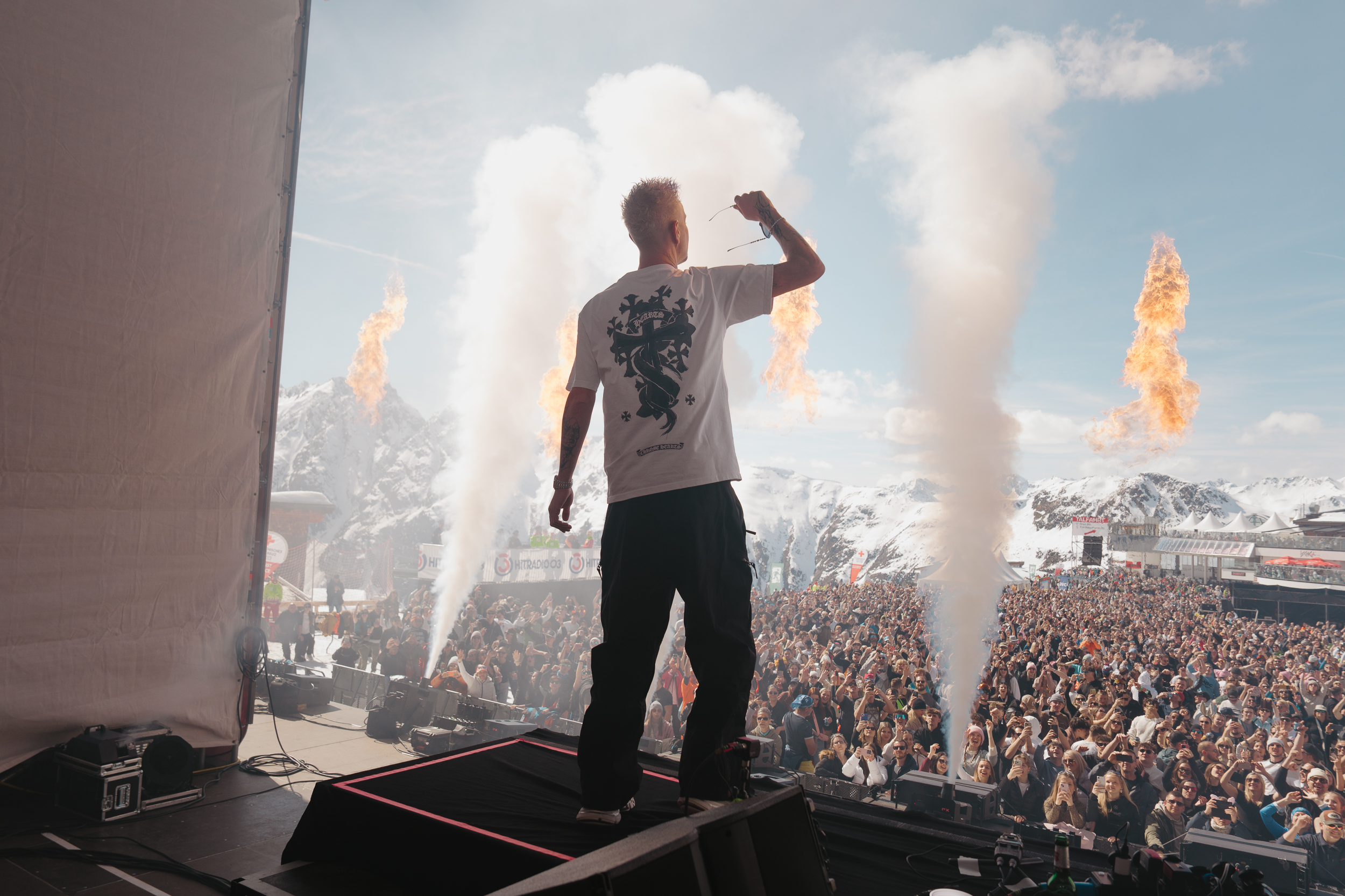 Vor der eindrucksvollen Alpenkulisse der Silvretta entwickelte sich ein mitreißendes Zusammenspiel aus Musik, Panorama und Frühlingssonne, das das Publikum bis in den Nachmittag hinein begeisterte. Immer wieder suchte der DJ die Nähe zu den Fans und ließ die Energie zwischen Bühne und Zuschauerraum förmlich hin- und herfließen. Die Beats hallten über die verschneiten Hänge, während Wintersportler und Konzertgäste gleichermaßen Teil dieses außergewöhnlichen Moments wurden. Selbst nach den letzten Tracks blieb die euphorische Stimmung noch lange spürbar und machte das Konzert zu einem unvergesslichen Highlight