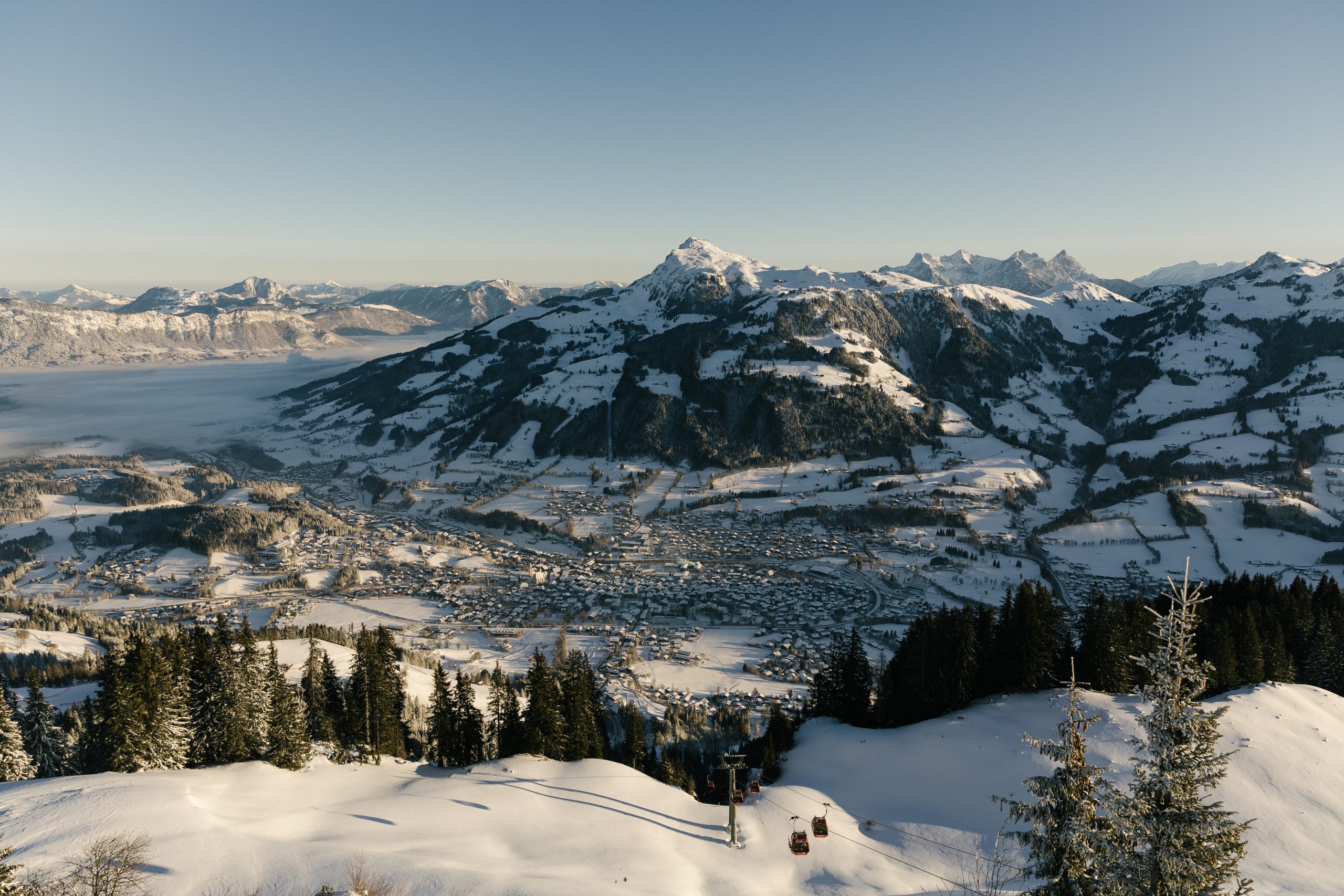 Bildtitel: Landschaft Panorama Infrastruktur Hahnenkamm Winter Gondel Stadt (c) Kitzbuehel Tourismus (2) Bildnummer: 276652 Copyright: © Kitzbühel Tourismus (dieWest)